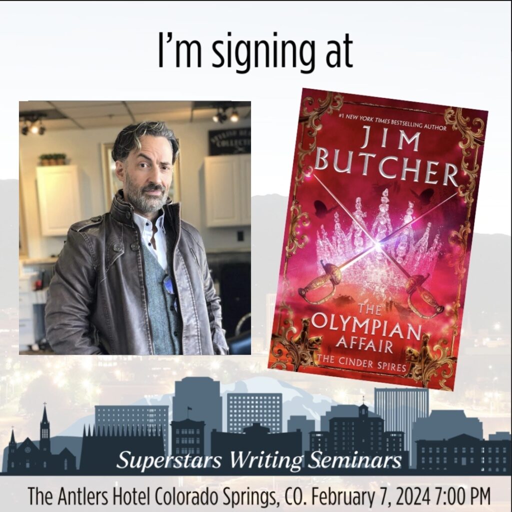 Jim Butcher is the author of the Dresden Files, the Codex Alera, and a new steampunk series, the Cinder Spires. His resume includes a laundry list of skills which were useful a couple of centuries ago, and he plays guitar quite badly. An avid gamer, he plays tabletop games in varying systems, a variety of video games on PC and console, and LARPs whenever he can make time for it. Jim currently resides mostly inside his own head, but his head can generally be found in his home town of Independence, Missouri.