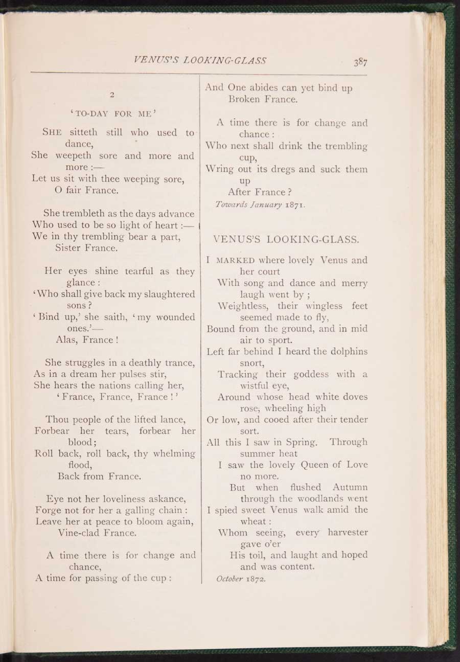Frances Polidori Rossetti bore this most important women poet writing in nineteenth-century England to Gabriele Rossetti. Despite her fundamentally religious temperament, closer to that of her mother, this youngest member of a remarkable family of poets, artists, and critics inherited many of her artistic tendencies from her father.