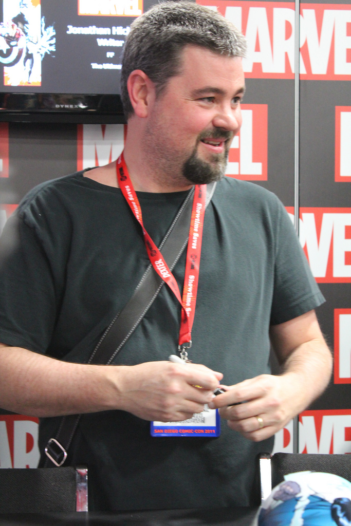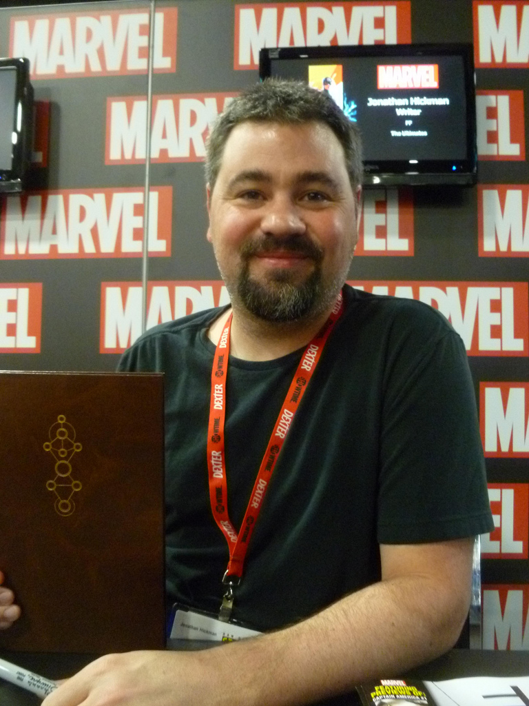 Jonathan Hickman is an American comic book writer and artist. He is known for creating the Image Comics series The Nightly News, The Manhattan Projects and East of West, as well as working on Marvel Comics' Fantastic Four, FF, and S.H.I.E.L.D. titles. In 2012, Hickman ended his run on the Fantastic Four titles to write The Avengers and The New Avengers, as part the "Marvel NOW!" relaunch. In 2013, Hickman wrote a six-part miniseries, Infinity, plus Avengers tie-ins for Marvel Comics. In 2015, he wrote the crossover event Secret Wars. - Wikipedia